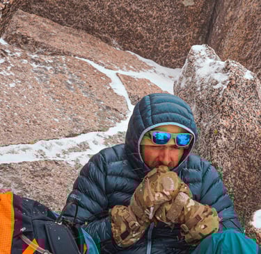 Insulation: HIMALI Accelerator Down Jacket — lightweight but incredibly warm for high-wind exposure.